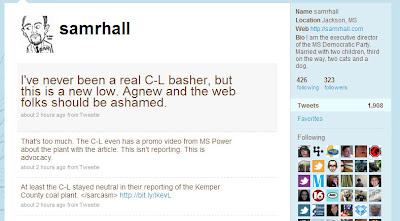 Last time we checked, electric power was nonpartisan. But Mississippi Democratic Party Executive Director Sam Hall seems to take issue with the Clarion Ledger’s coverage of Mississippi Power.