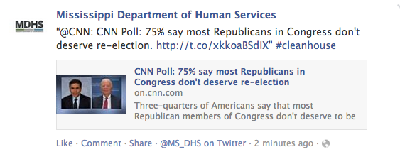 Reporter Tweets Screenshot of Anti-Republican Facebook Post by Mississippi State Agency