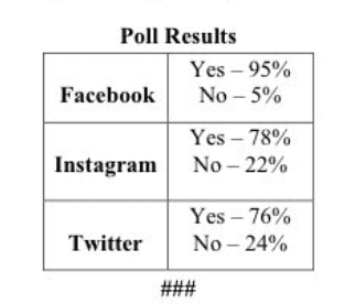 The poll took place on Facebook, Instagram and Twitter between July 1 and July 15. However, there was no insight as to the demographics of those who were reached by the poll or how many responses were recorded. The only data provided by Thompson was a percentage of how many recorded responses were yes or no.
