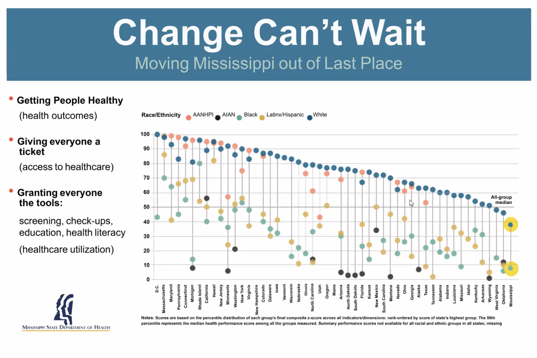 The new State Health Officer looked at the improvements in education and the investments made at all levels to move the needle away from the bottom.