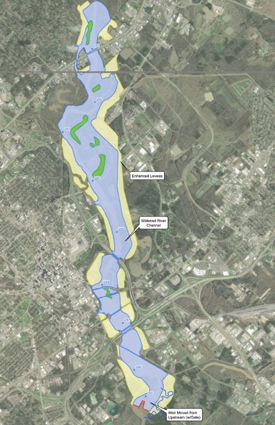 The current levee system only protects the State Fairgrounds and surrounding areas as well as portions of the City of Pearl in Rankin County. The proposed project will widen the already channelized river, allowing more water to move through the area in high water events, no longer backing up into neighborhoods and businesses.