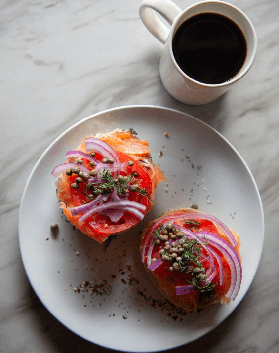 Pizzas are offered from 5 pm to 9 pm Thursday through Saturday. Bagels are offered beginning at 9 a.m. until noon, or until sell-out, on Saturday only. The restaurant features several breakfast sandwiches made on your choice of bagel.