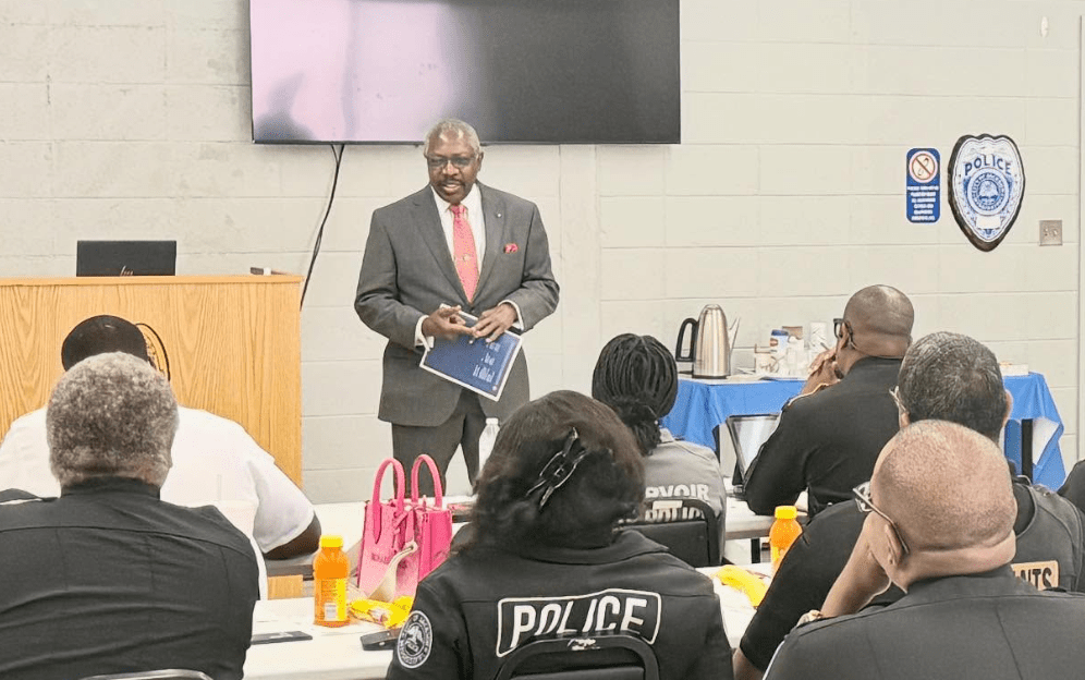 Jackson Mayor John Horhn speaking to JPD officers. (Photo from John Horhn's Facebook page)