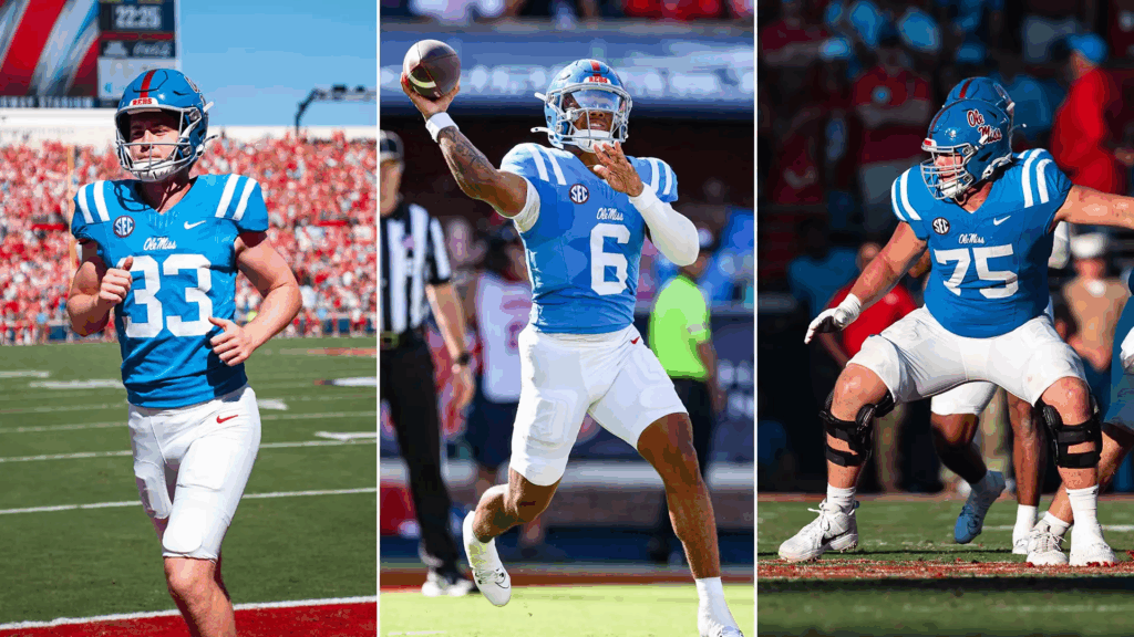 Following the program’s win over No. 4 LSU, Ole Miss football punter Oscar Bird (Freshman of the Week), quarterback Trinidad Chambliss (Offensive Player of the Week) and right guard Patrick Kutas (Offensive Lineman of the Week) all earned weekly awards from the SEC conference office.