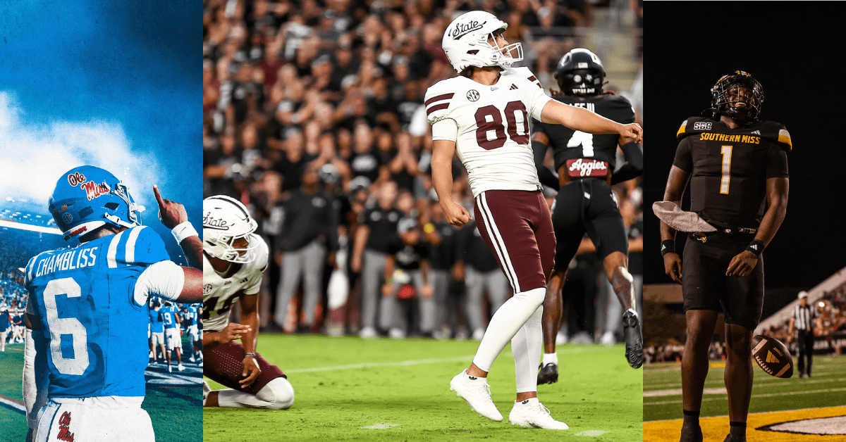 (Photos from OleMissFB, HailStateFB and SouthernMissFB on X)