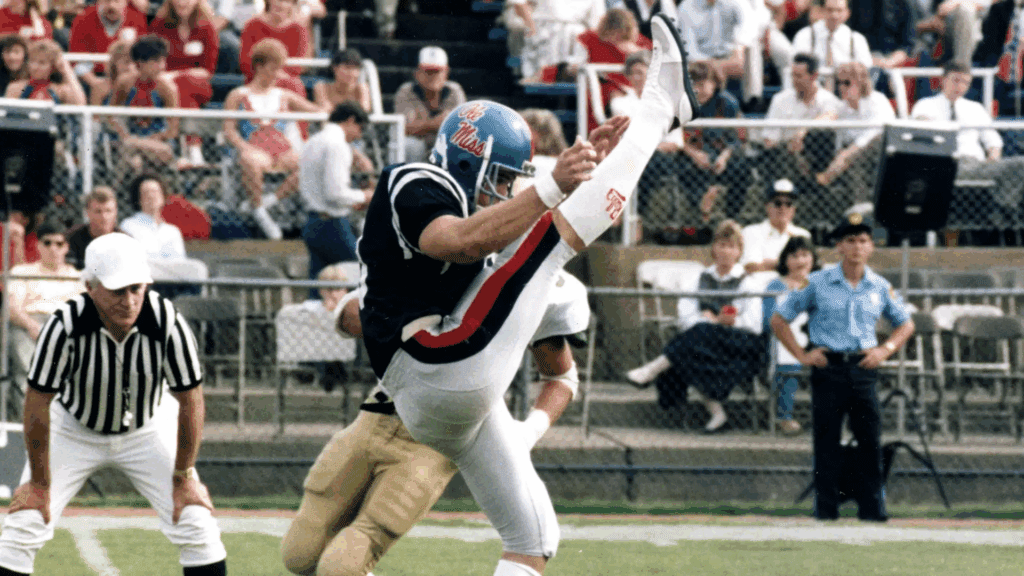 Known for his booming leg, Ole Miss Athletics said Smith averaged an impressive 44.3 yards on 254 career punts. He set an NCAA record with a 50-yard punt in 32 consecutive games and remains No. 2 in SEC history for career 50-yard punts (86) and games averaging 40 or more yards (36). His 92-yard punt and 84.5-yard single-game average against Southern Miss in 1984 still stand as SEC records. Smith capped his college career with appearances in the Senior Bowl and the Blue-Gray Game, and was a seventh-round selection by the Green Bay Packers in the 1987 NFL Draft. Smith was later honored with a spot in the Ole Miss Sports Hall of Fame in 2016.