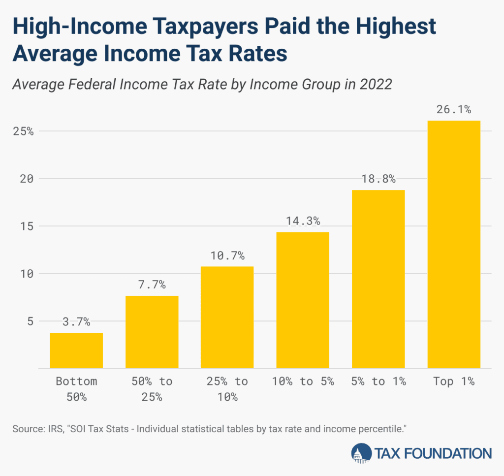 Colom’s comments come despite the fact that high-income earners already pay a higher effective tax rate, accounting for the bulk of income tax collected by the federal government, as shown in research from the Tax Foundation.
