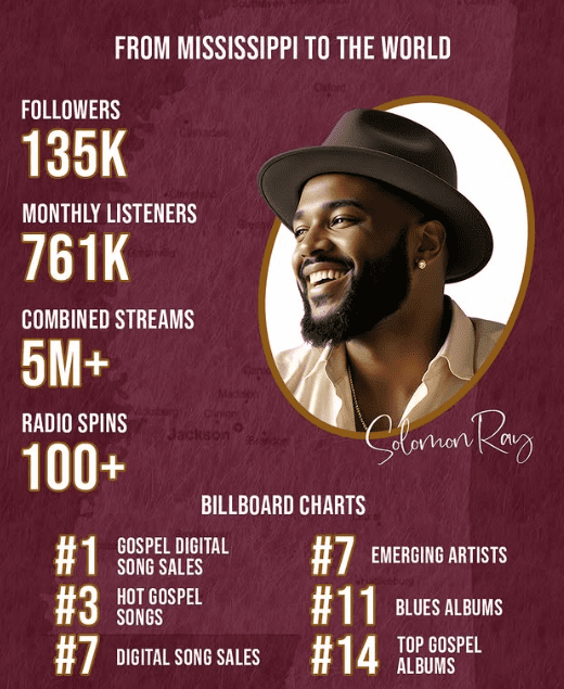 WLBT reports that a “Mississippi-made” singer “currently has the top Christian album on iTunes. His song “Find Your Rest” has over 1,000,000 plays on Spotify. His TikTok has 75,000 followers.”