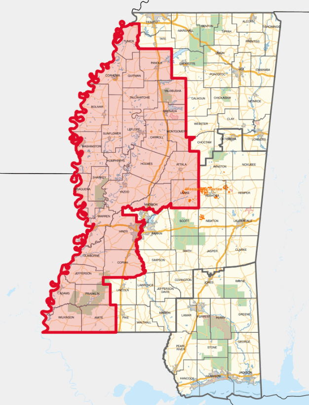 State lawmakers redrew the 2nd Congressional District after the 2020 Census, extending its boundaries from near the Tennessee line down the Mississippi River to the state’s southwest corner and eastward into the middle of the state. This was a significant change aimed at maintaining Mississippi’s lone majority-minority congressional district as nearly 65,000 citizens moved out of the district and into other parts of Mississippi over the previous ten years.