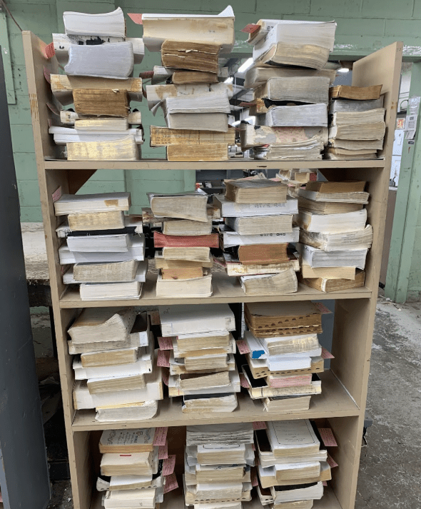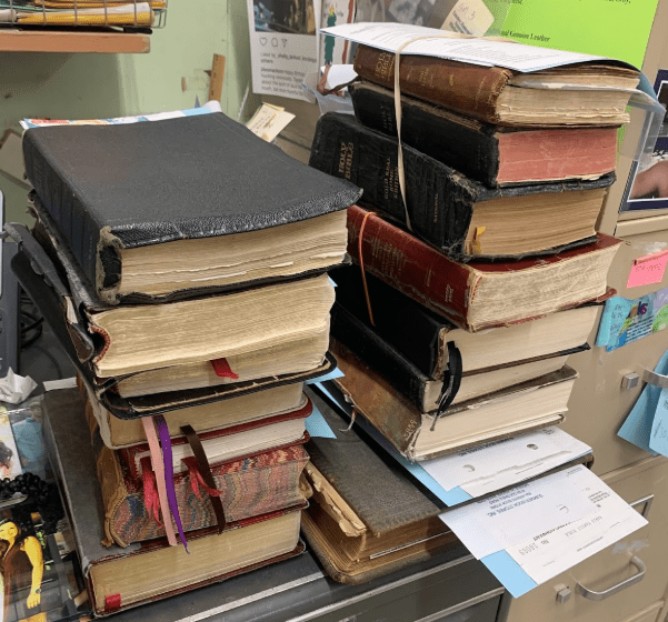 These were family Bibles filled with handwritten notes. Wedding dates. Births and deaths. Sermons underlined and reread. Large pulpit Bibles were once opened every Sunday. Volumes that couldn’t simply be replaced, no matter how many new editions existed.