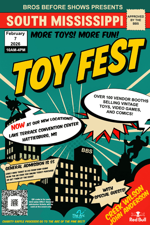 The South Mississippi Toy Fest returns on Saturday, February 7th from 10:00 a.m. until 4:00 p.m. at its new location – the Hattiesburg Lake Terrace Convention Center.