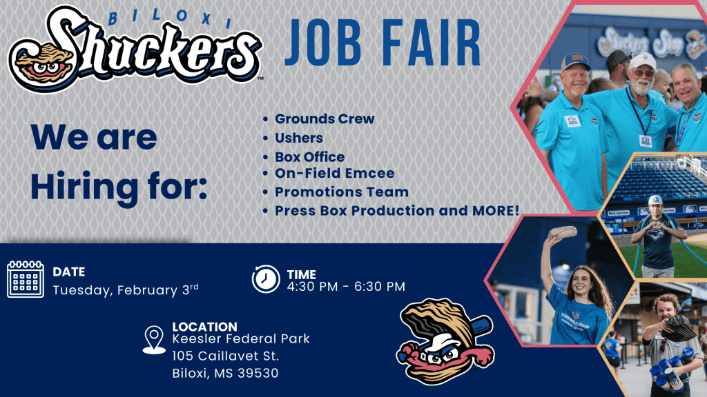 The Biloxi Shuckers are holding their annual Job Fair from 4:30-6:30 p.m. on Tuesday, February 3, at Keesler Federal Park.