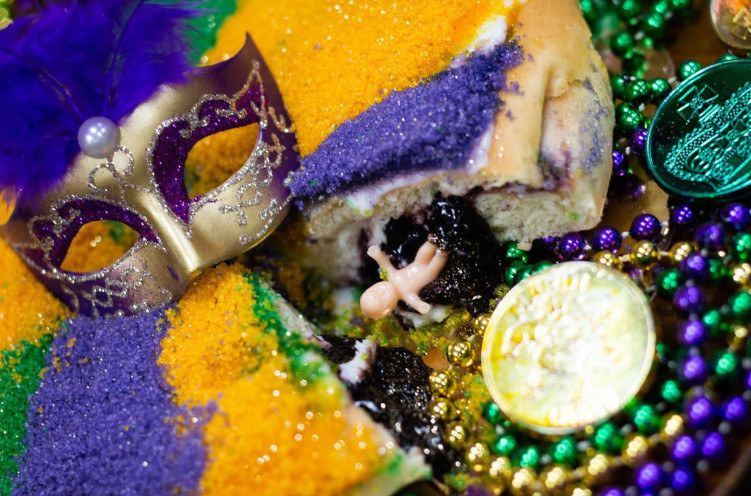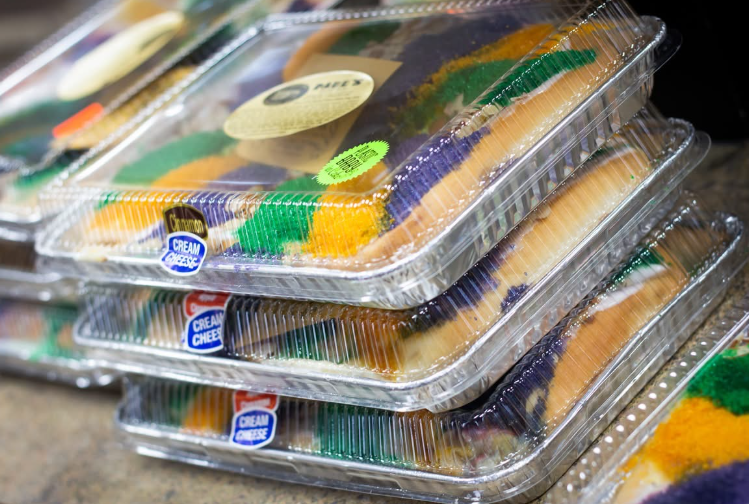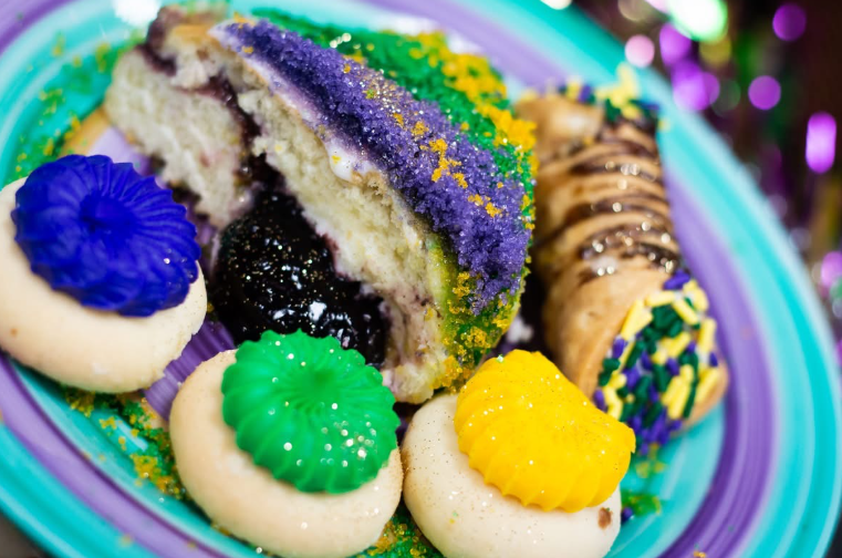 Step inside during Mardi Gras, and you feel it immediately. Rows of golden-brown cakes cool on racks, air rich with butter and sugar. Thick ribbons of cream cheese swirl into sweet bread. Purple, green, and gold sugars sparkle. Boxes stack high. Laughter echoes from the back. It’s busy—in the best way.