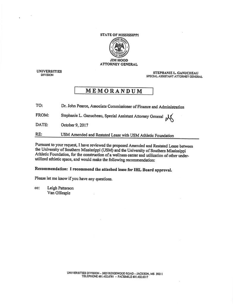 Ganucheau’s mother, Stephanie, was the former Assistant Attorney General under Jim Hood who served at the State Institutions of Higher Learning. She played a role in reviewing and recommending the approval of the University of Southern Mississippi volleyball facility that has been at the center of the questionable Temporary Assistance for Needy Families (TANF) spending.