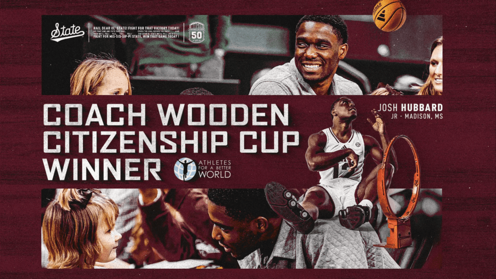 Mississippi State’s Josh Hubbard has been recognized for his exceptional leadership, character and commitment to community service as the 2026 Coach Wooden Citizenship Cup announced Thursday.