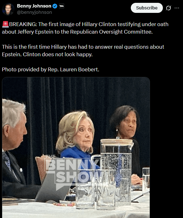 “Mrs. Clinton arrived to testify under oath at the Center for Performing Arts in Chappaqua, N.Y., defiant about being compelled to participate in the panel’s investigation into Mr. Epstein, the convicted sex offender who died in prison in 2019,” NYT reported, adding, “In a day’s worth of questioning that she later called ‘repetitive’ and unproductive, Mrs. Clinton told the committee that she did not recall ever encountering Mr. Epstein and ‘never flew on his plane or visited his island, homes or offices.'”