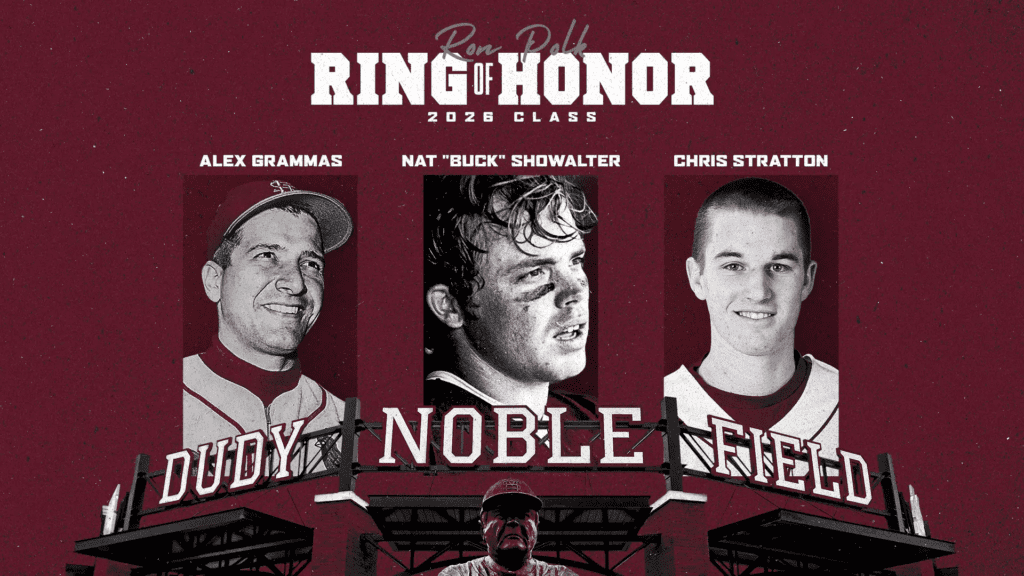 The program announced that Nat “Buck” Showalter, Alex Grammas and Chris Stratton will be the latest group of Mississippi State Baseball legends to be immortalized onto the pillars of the Adkerson Plaza in right field at Dudy Noble Field/Polk-DeMent Stadium.