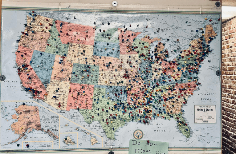 People come from all over to eat Solly’s Hot Tamales. There is a map of the United States in the restaurant that marks either where customers have traveled from or where the tamales are shipped to, with all 50 states represented. People from other continents have enjoyed them as well.